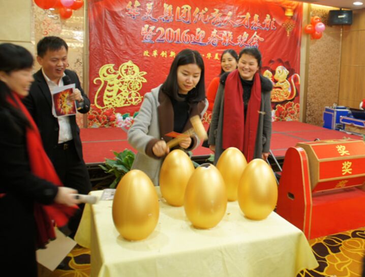 随着证券投资一部陈涛一曲优美的海阔天空,联欢会最引人瞩目的砸金蛋环节开始了,金花纷飞中,有人获得了现金大奖,也有人获得了“六袋苹果”和“苹果笔记本”,中奖的人个个笑颜逐开、喜气洋洋,表示今年开了个好彩头。